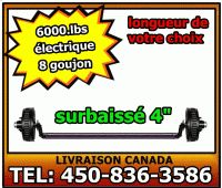 essieux de remorque 6000 lbs 4po drop frein electrique moyeu 8 trous noir