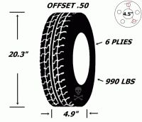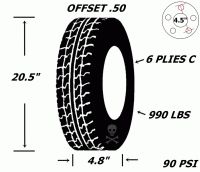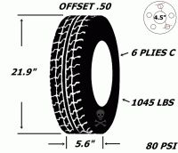 Pneu et jantes 12 pouces 4.80-12l oadstar 990 lbs 5 trous 6 plies