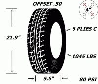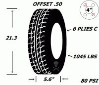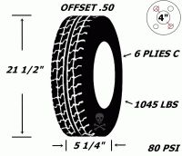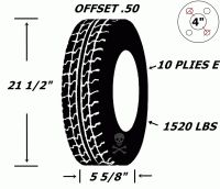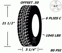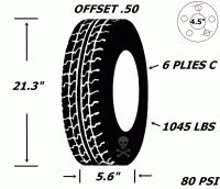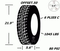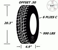 Pneu et jantes 145r12 sport st acier 4 tr h-d 10 plies offset .50 21 1/2